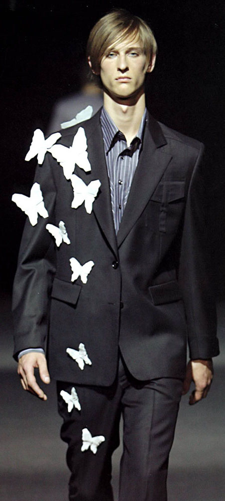 In de ontwerpen van Jeroen van Tuyl zit een zekere speelsheid. Hier trok het ontwerp mijn aandacht doordat met losse stukken stof toch een geheel kledingstuk ontstaat.